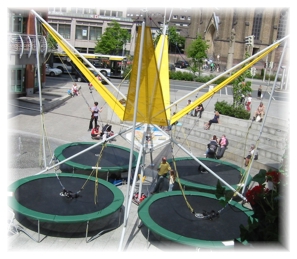 Eine fantastische Attraktion für Kinder, Erwachsene und Jugendliche. Das Sicherheitsnetz verhindert jegliches Herausfallen. Die Trampoline sind sehr flexibel aufstellbar.